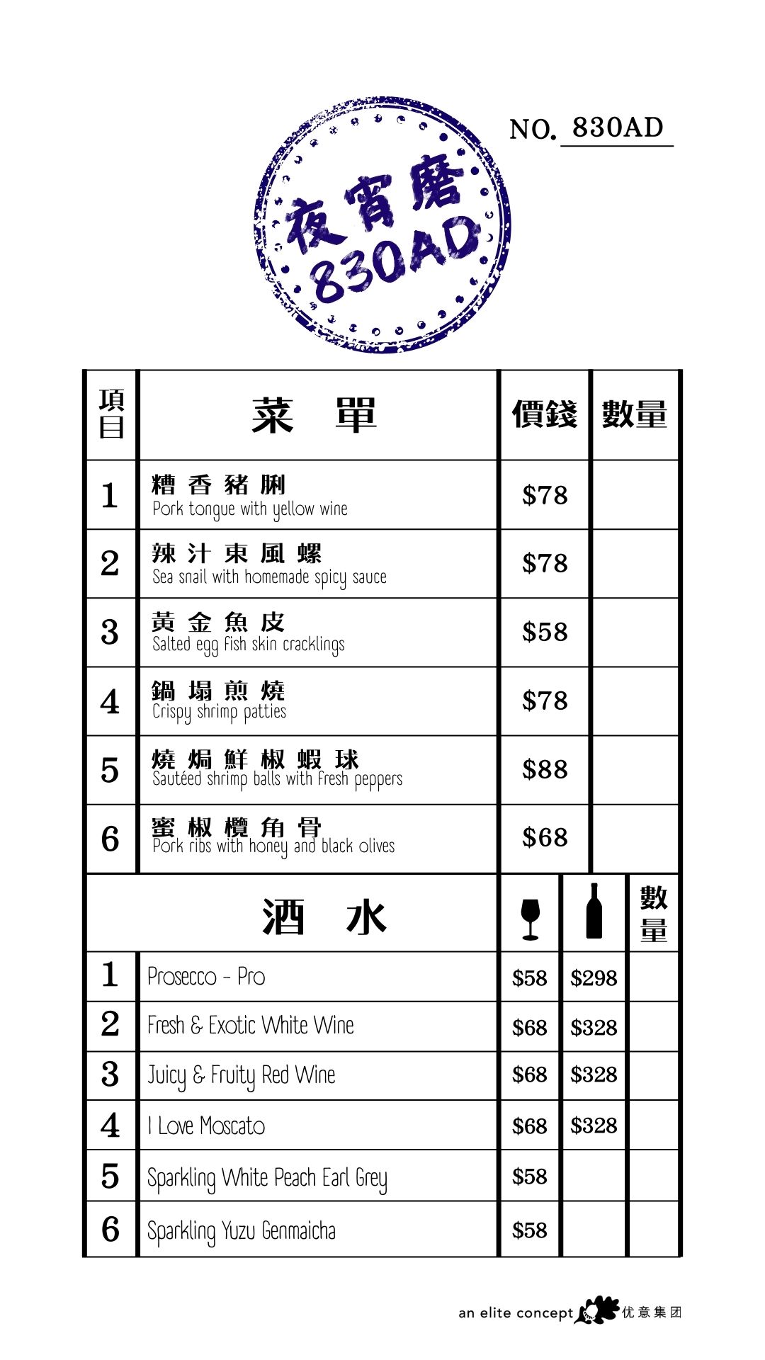 Let's unveil an exciting after-dark program to energize Hong Kong's evenings with music, energy and good foods! The initiative offers small-portion dishes, wines, and champagnes every night after 8:30pm at select venues under Elite Concepts: Nanhai No.1, Nanhai No.2, Ye Shanghai, Deng G, Lotus & Spice and Eyebar. The evolving menu features bite-sized gourmet options that change periodically for fresh surprises, paired with premium beverages in a lively atmosphere. Just walk in and enjoy! Menu