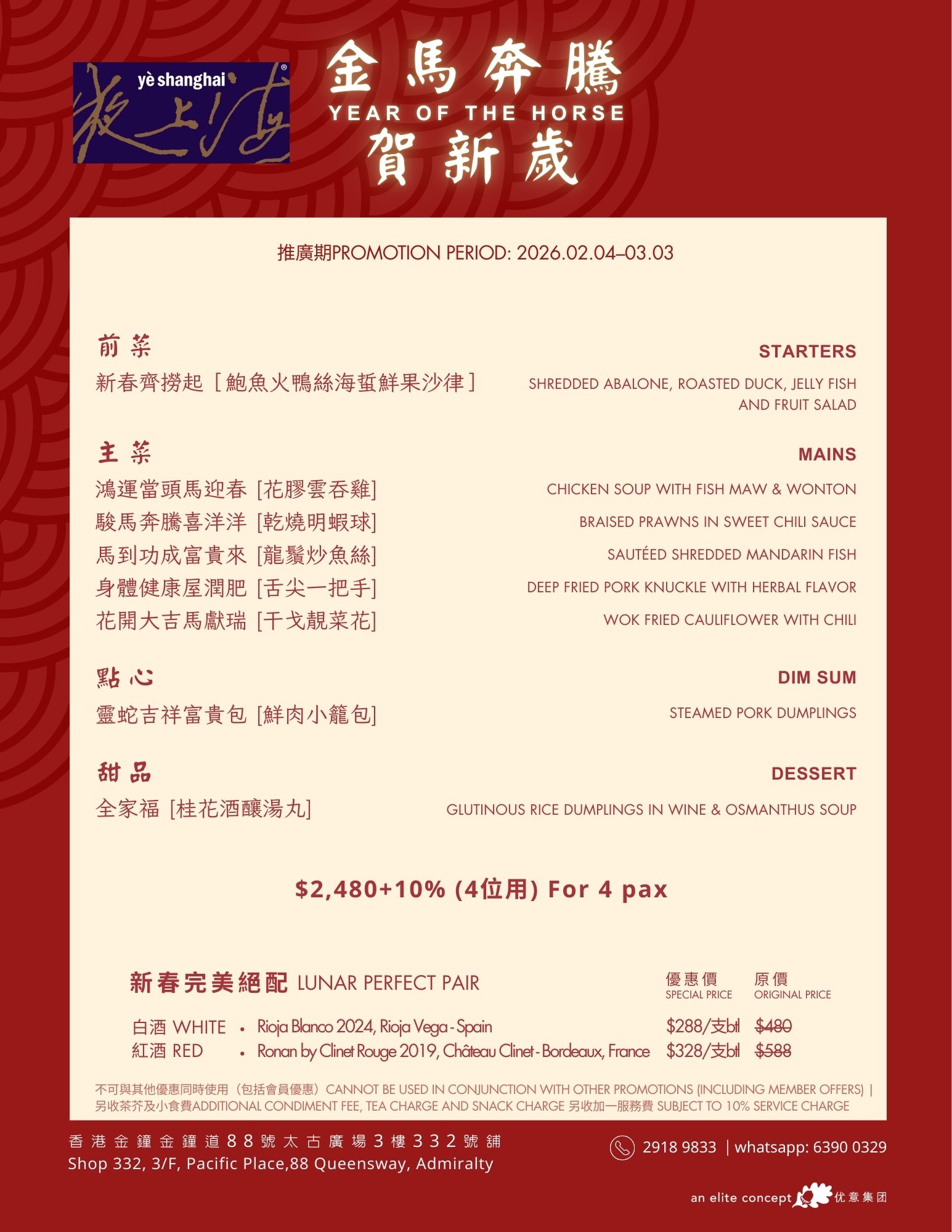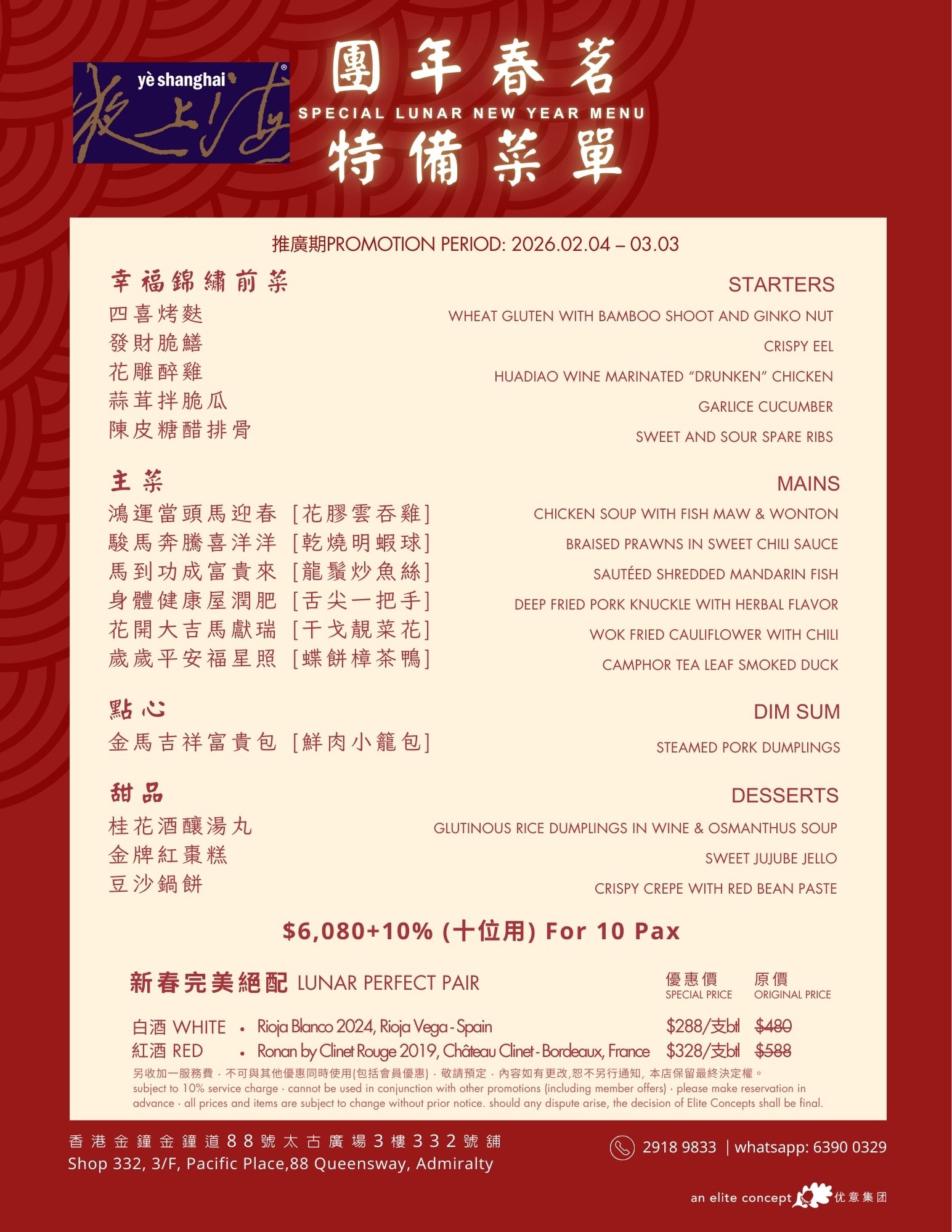 This booking number only for ye shanghai (Pacific Place), Admiralty